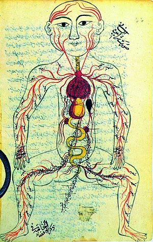 ![]() Gravura sobre a circulação sanguínea do médico Ibn en Nafis - séc. XIII d.C. - Biblioteca Nacional de Paris |