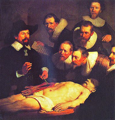 ![]() A Lição de anatomia do "Dr. Nicolaes Tulp" Rembrandt, 1632 - Museu Mauritshuis, Haia |