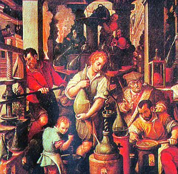 ![]() Laboratório de um alquimista De Jan Stradanus (1570) - Biblioteca Nacional de Paris |